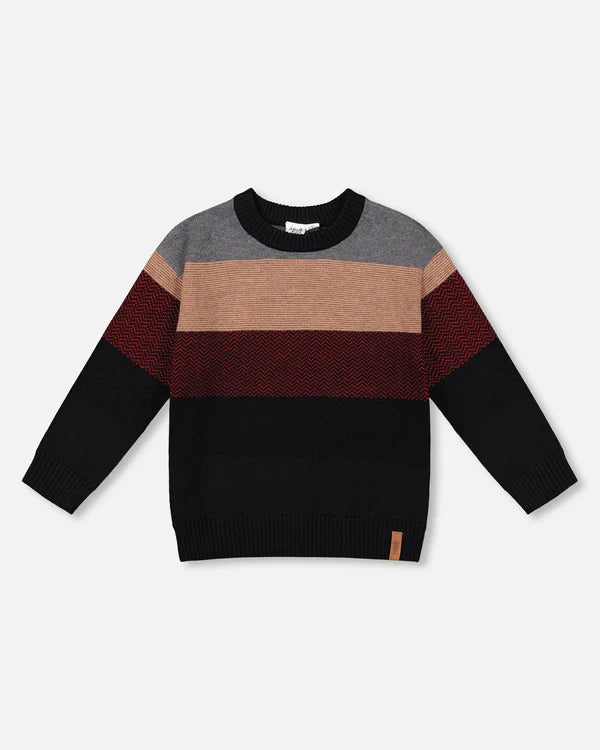 Deux Par Deux - Long Sleeve Knit Sweater Dress Black And Beige