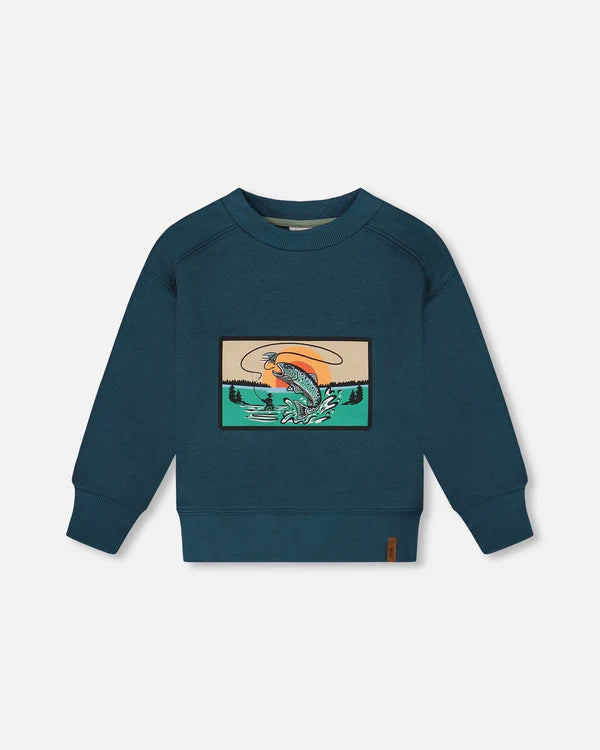 Deux par Deux Kid’s Printed Fox Fleece Sweatshirt (Gray Mix)