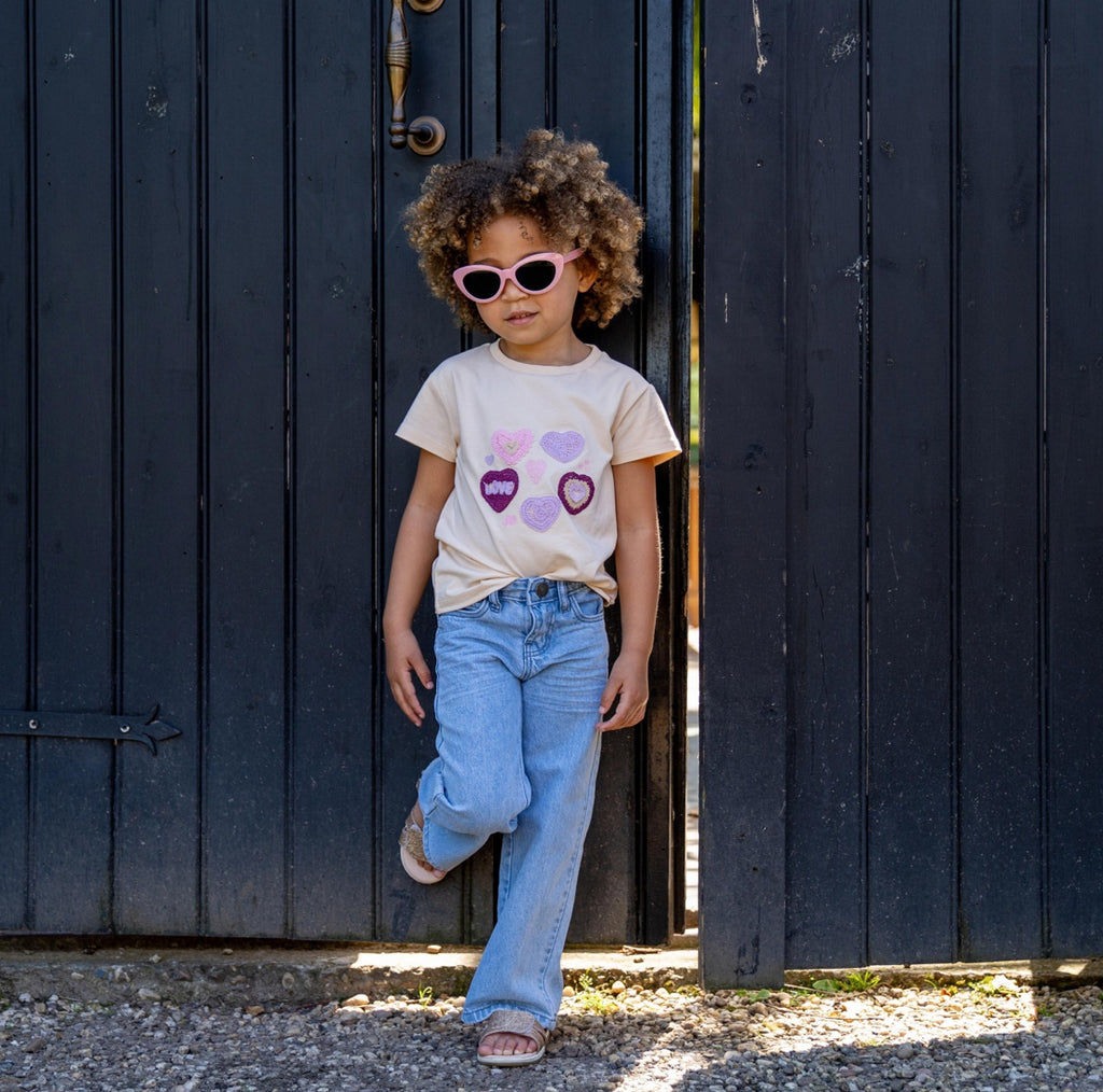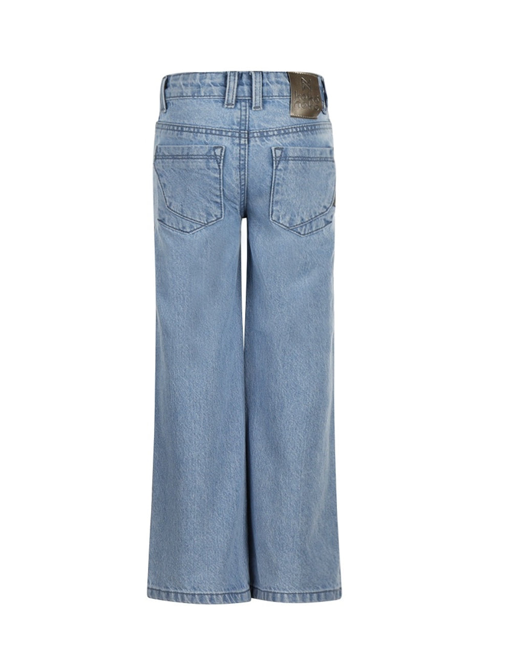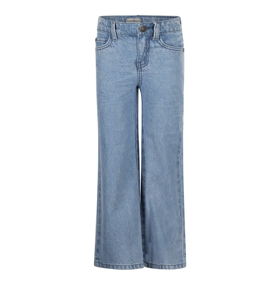 Play and explore in style with Koko Noko's trendy wide leg jeans. The Koko Noko jeans have a nice wide leg and are blue in colour. The jeans for girls have an adjustable waist and sizes up to 110 feature a sliding button. Endlessly combinable with T-shirts from the Koko Noko collection.