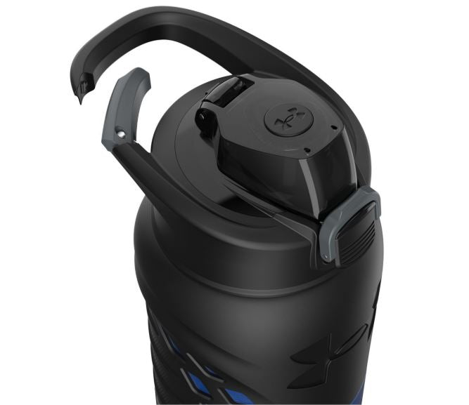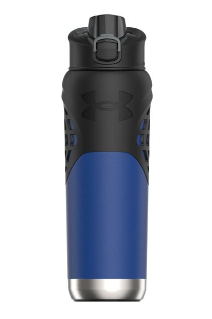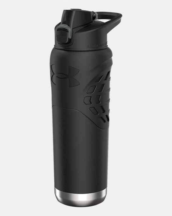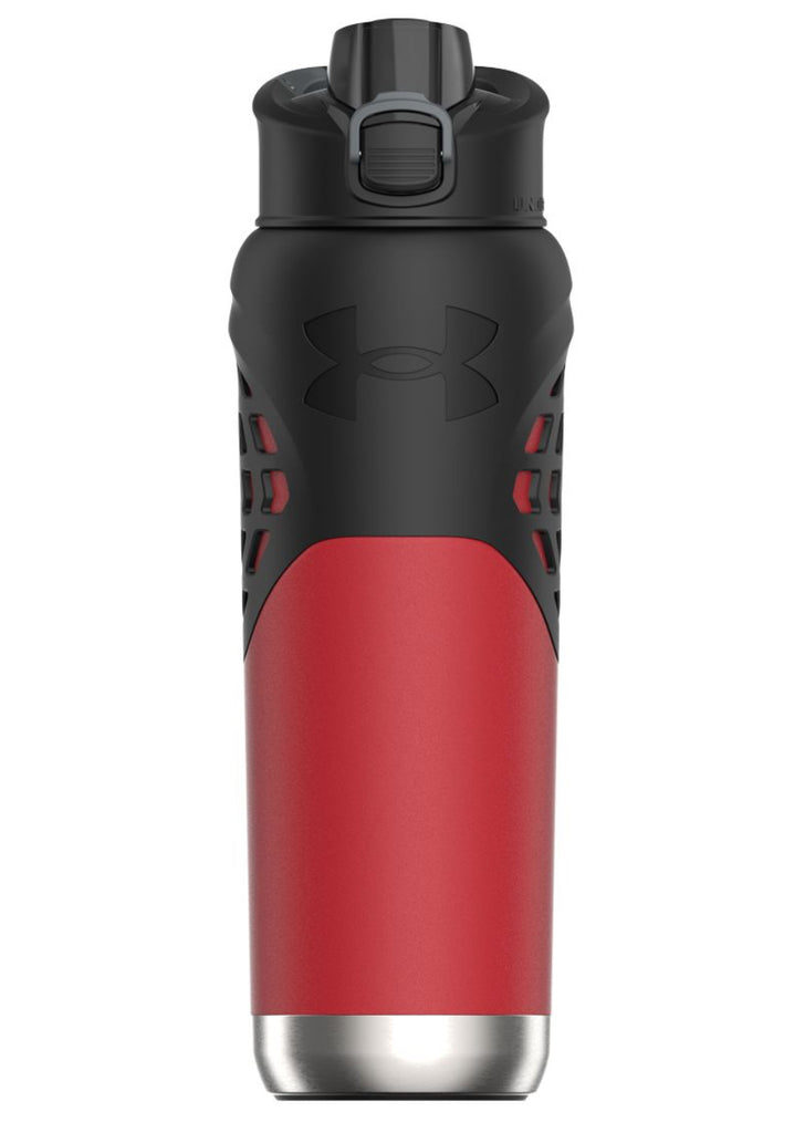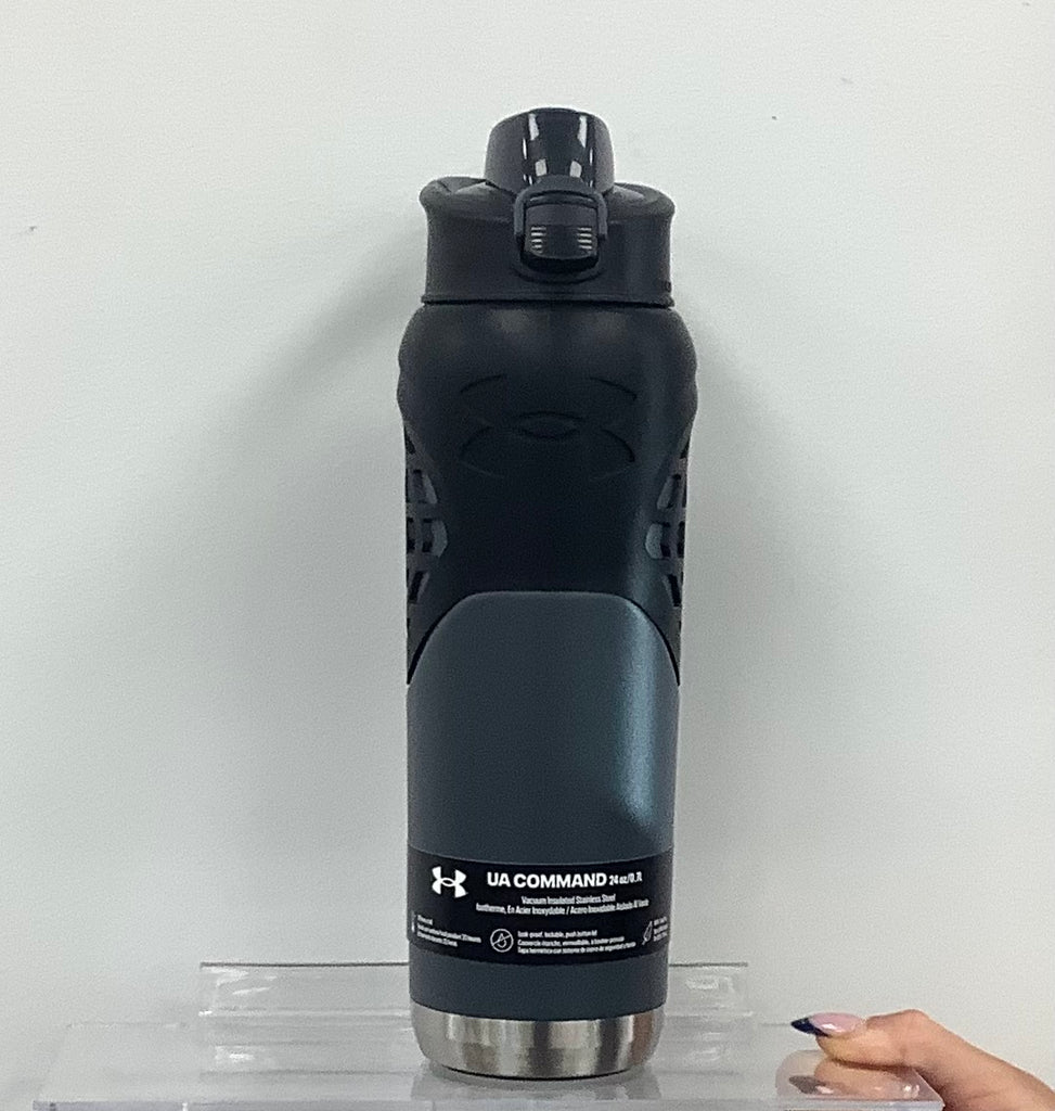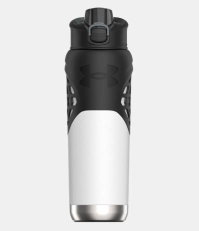 Stay hydrated with the Under Armour Command 24 oz Water Bottle, featuring a vacuum-insulated stainless steel design that keeps drinks cold for 20 hours. Its unbreakable structure and leak-resistant, lockable lid ensure durability and cleanliness, while a built-in handle with carabiner makes it easy to attach and carry. This handy Under Armour water bottle also features Non-slip details that enhance grip and stability, and is BPA and lead-free.