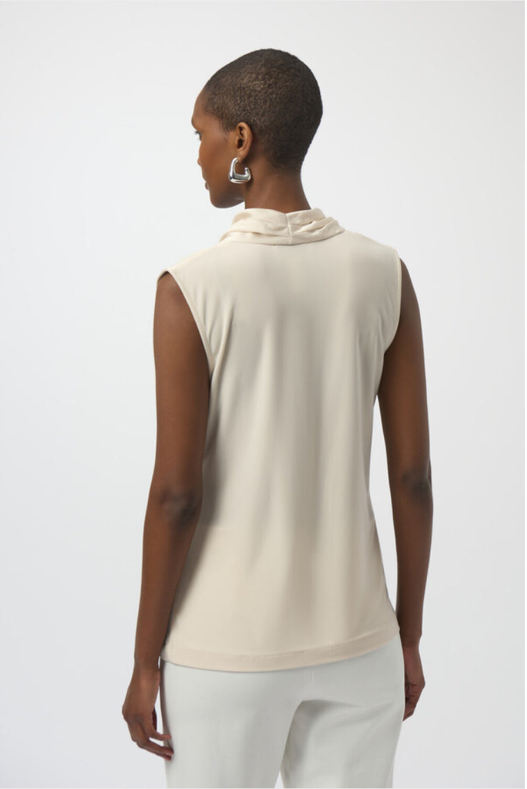 Experience effortless elegance with the Joseph Ribkoff pullover. This hip-length, sleeveless piece features a chic v-neckline and a draped wrap style, perfect for casual, semi-formal, or office settings. The plain pattern and minimalistic design ensure versatility, while the regular fit offers comfort and a flattering silhouette. Ideal for those who appreciate a blend of style and sophistication.