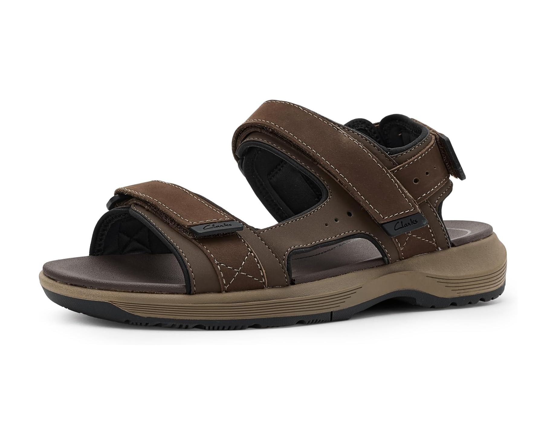 - Clarks® Collection Guideview Trek is an adjustable sandal ready for the windy and warm months. It features a dual-density outsole with slip-resistant storm sipping for maximum underfoot confidence, and three adjustable straps for a comfortable, customizable fit. Its sturdy construction keeps it prepped for outdoor adventures, while the super-soft ethylene-vinyl acetate footbed is all about dialing up the comfort on every outing.