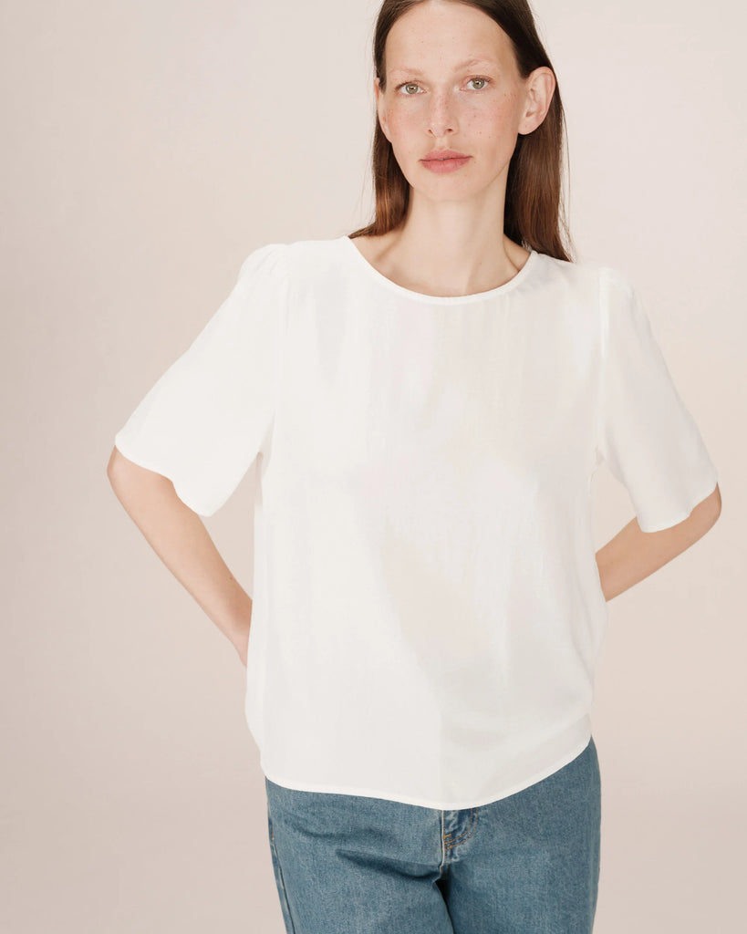 Grace and Mila 🫧 FLOWY CREW NECK TOP IVOIRE SHINE