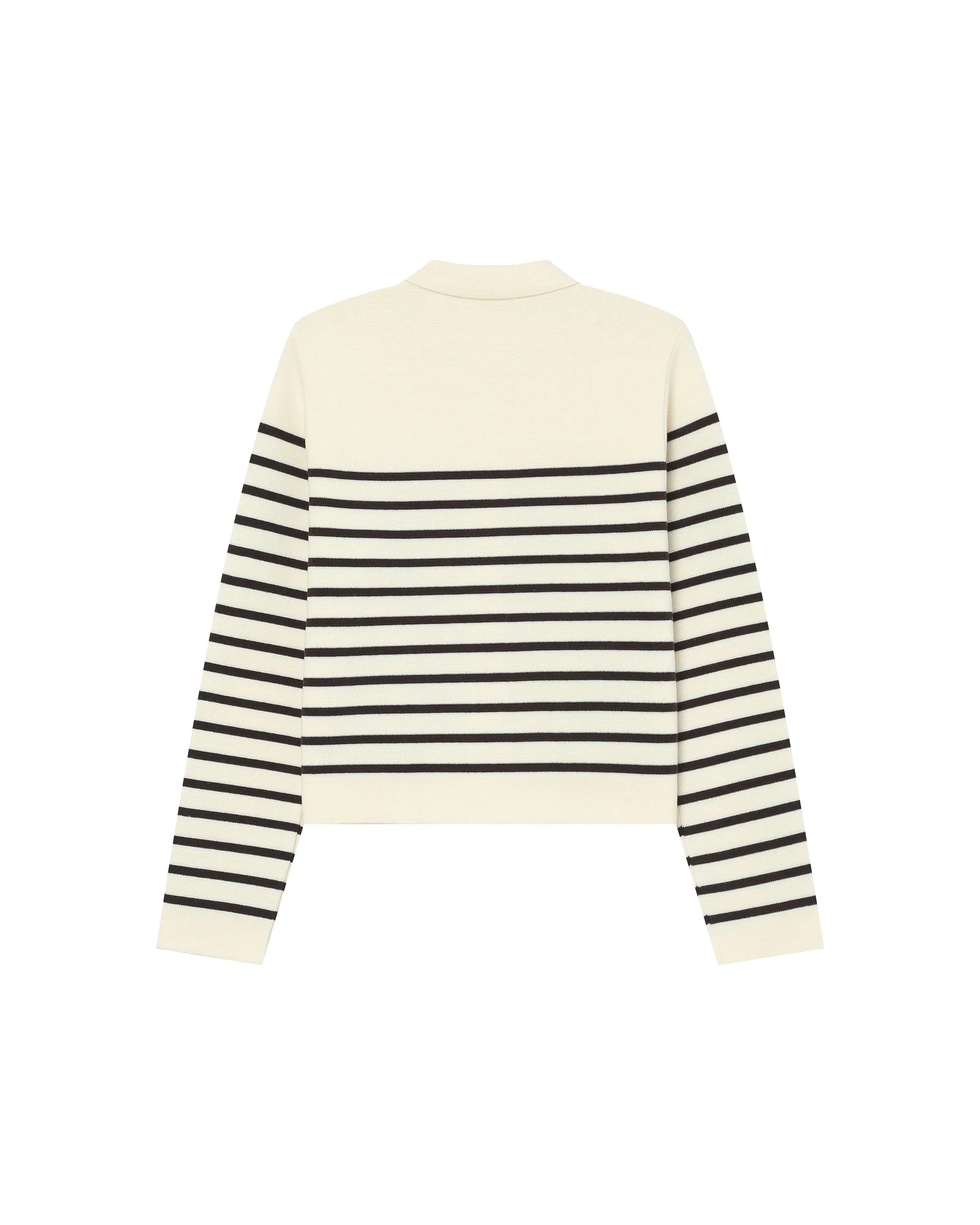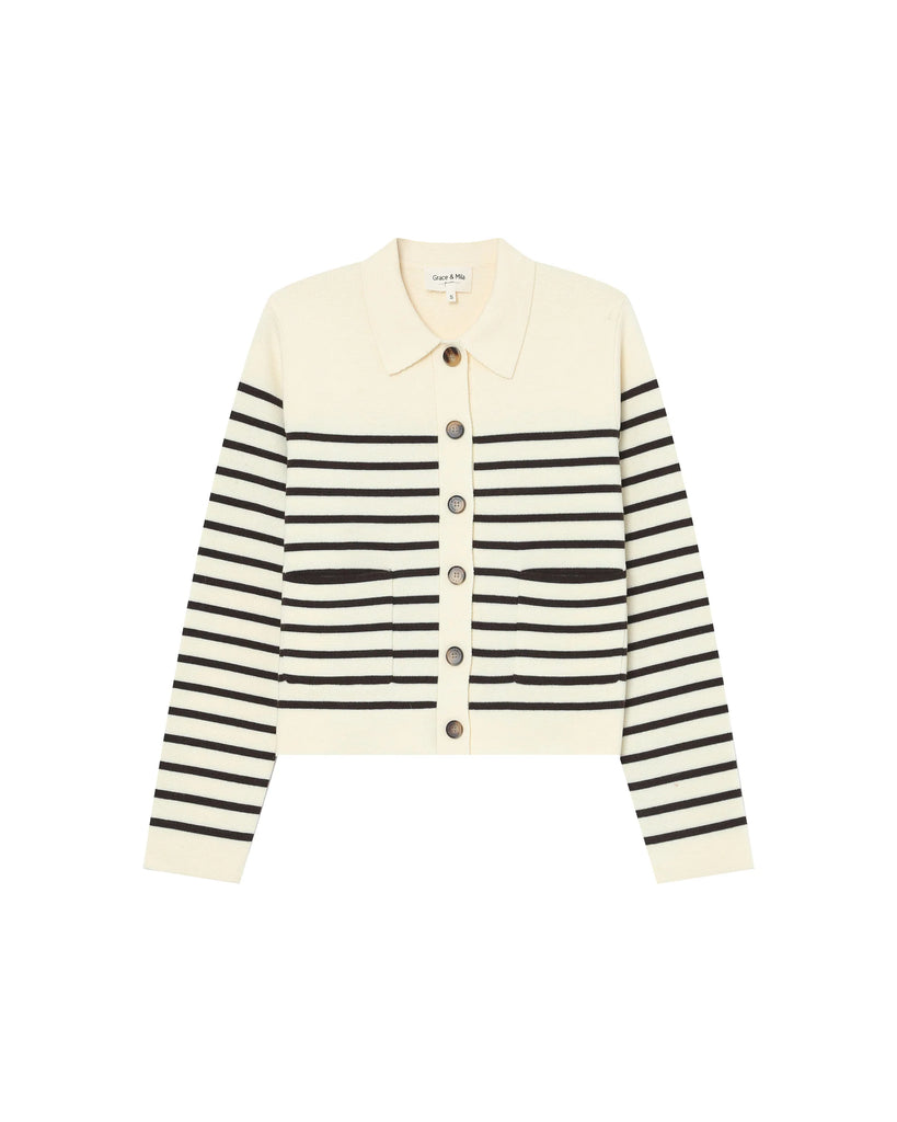 The SAILOR long-sleeved cardigan is a timeless piece that combines comfort and elegance. Made from Milano knit, this style offers structure with softness, featuring a straight cut and neat finishes. The shirt collar and patch pockets add a touch of revisited retro charm. Easy to wear, the SAILOR buttoned cardigan comes in solid or striped versions.