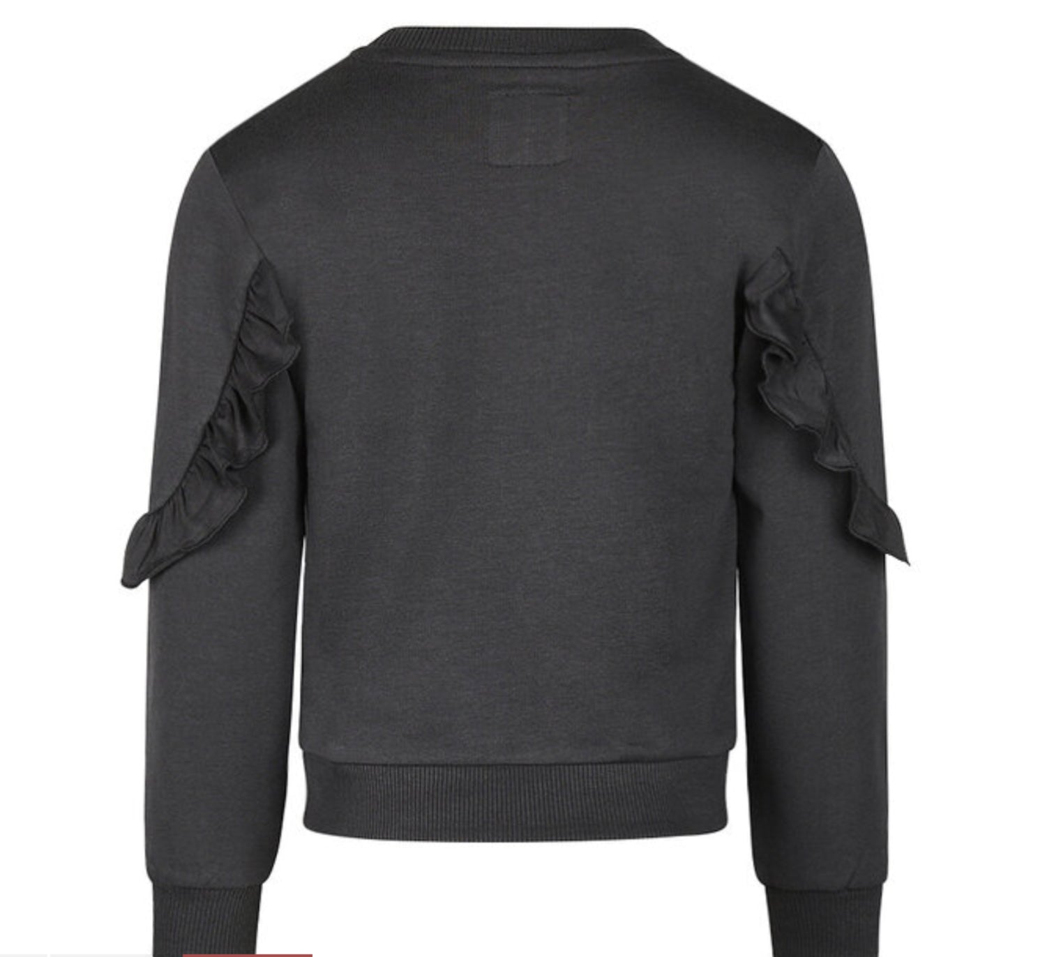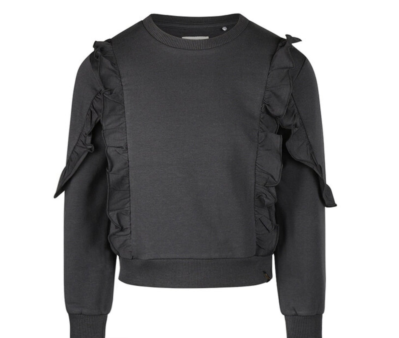 Give your daughter a stylish look with this Koko Noko sweater in the trendy color faded black. This girls' sweater stands out because of the playful ruffles that run across the front and sleeves. A versatile basic that combines perfectly with jeans or a skirt. The soft fabric and comfortable fit make it ideal for