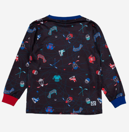 Get your little hockey fan ready for bed with our Nanö boys hockey pajamas. Made with a two piece design, these pajamas are perfect for keeping your child comfortable and cozy all night long. Featuring a classic black color and a fun hockey print, these pajamas are a must-have for any young sports enthusiast.