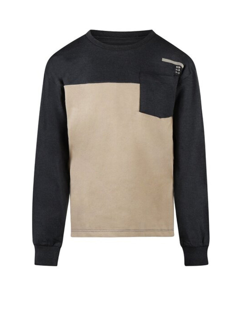 This No Way Monday longsleeve is an ideal choice for chilly days. This boys' longsleeve shirt has a relaxed fit thanks to the dropped shoulder. The off white colour with the anthracite top gives the longsleeve a cool look, complete with a cool chest pocket.