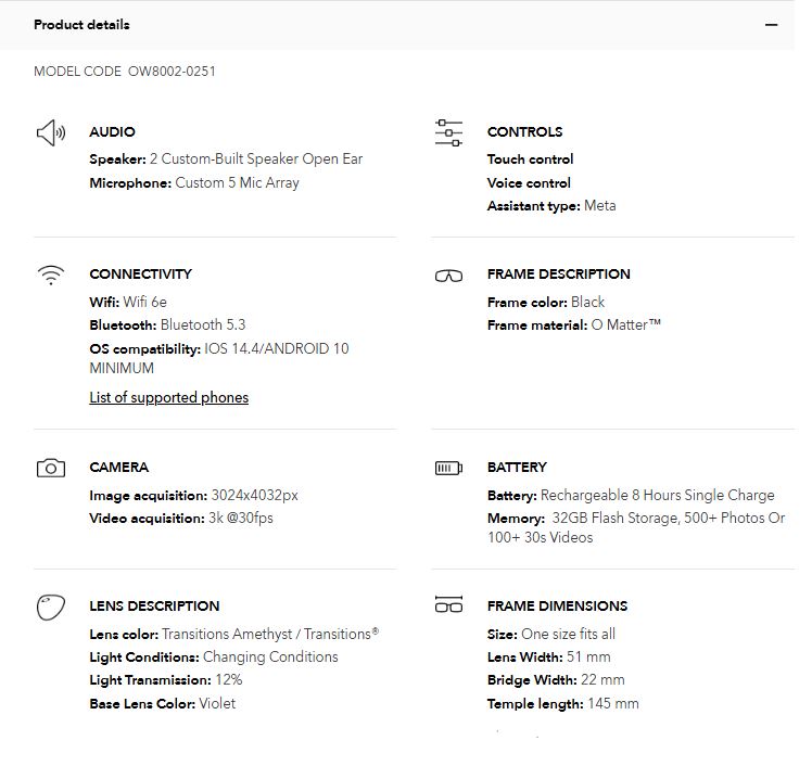 The Meta AI app is required to support your glasses experience. (Certain Meta AI features are only available in select countries and languages.)