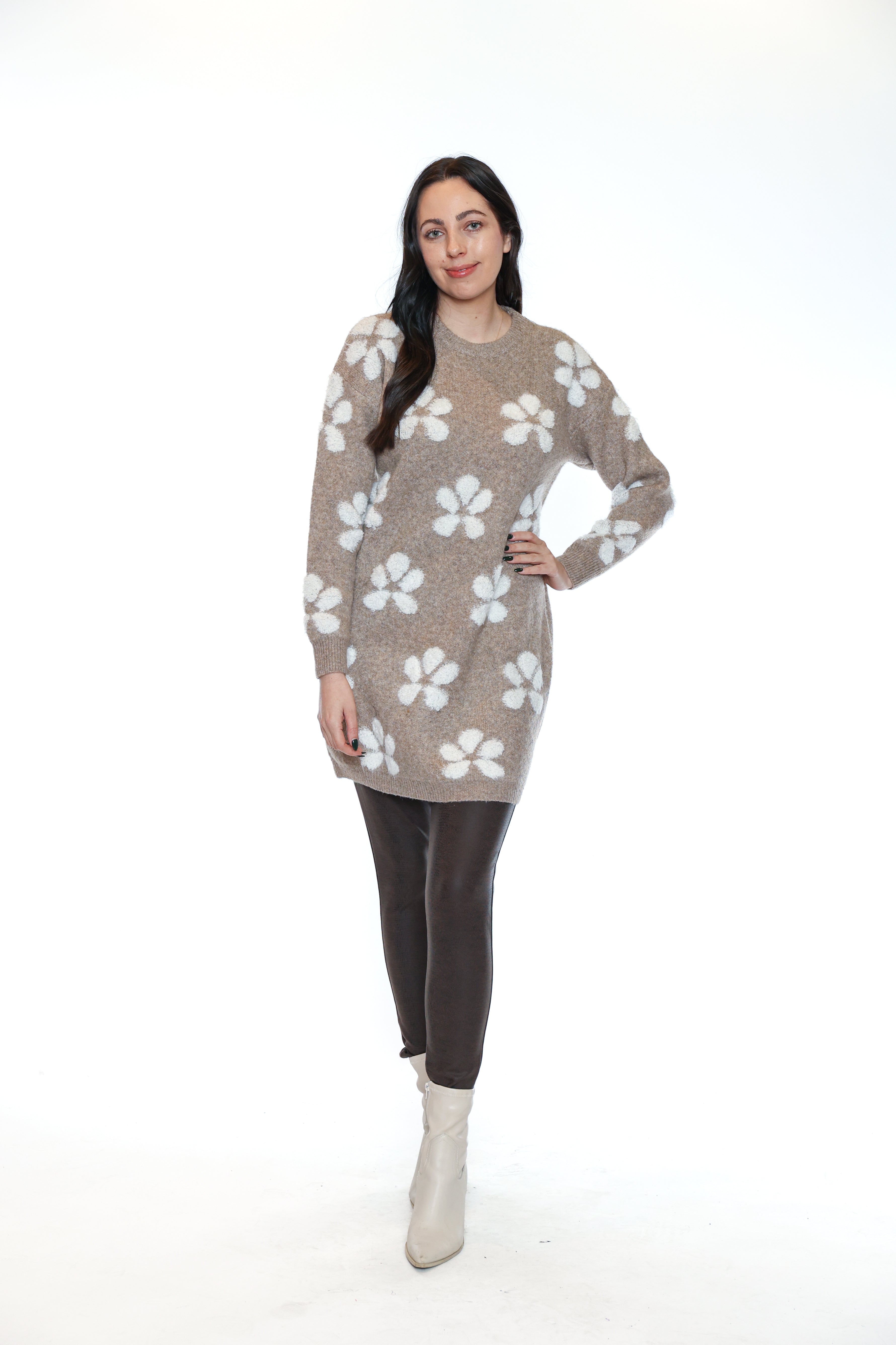 Crafted from soft, cozy fabric, the Papa Fashion Floral Sweater Dress in Taupe pairs comfort with style. The intricate floral design adds a touch of elegance to this versatile piece, making it suitable for both casual and dressy occasions. Stay warm and chic with this must-have addition to your wardrobe.