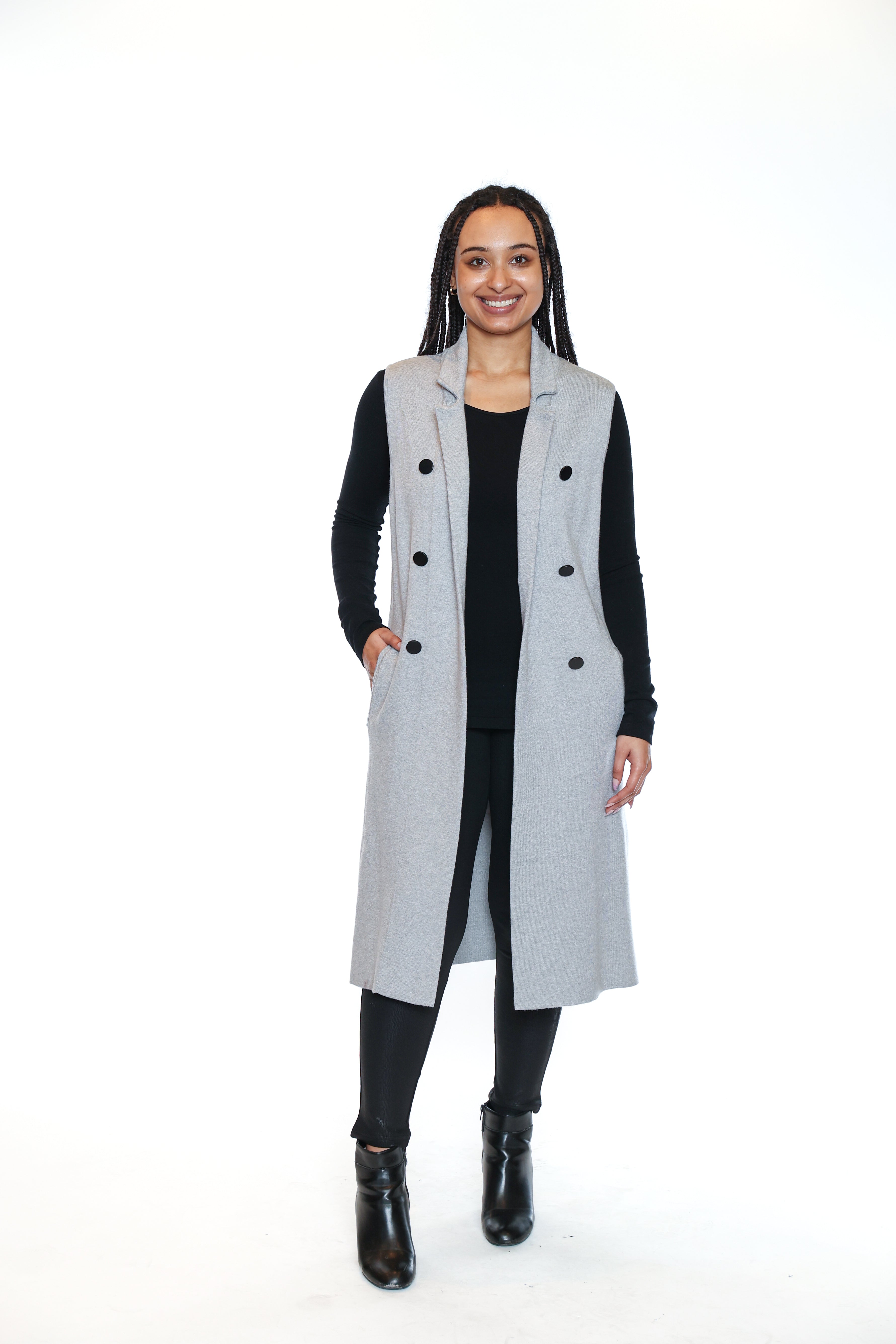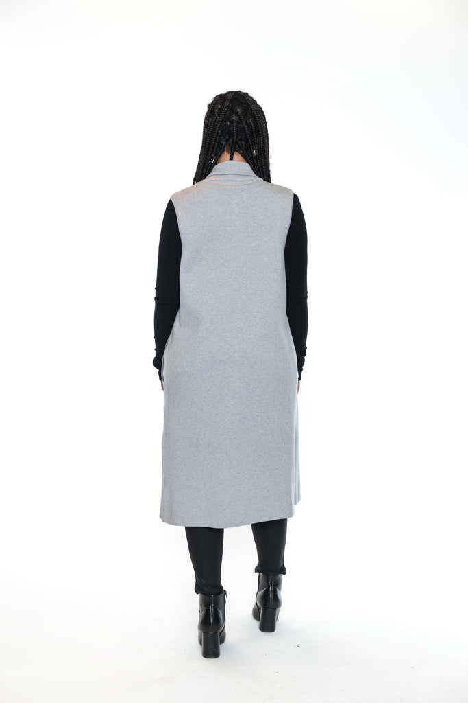 Papa Fashions Long Sweater Vest with Pockets in Grey