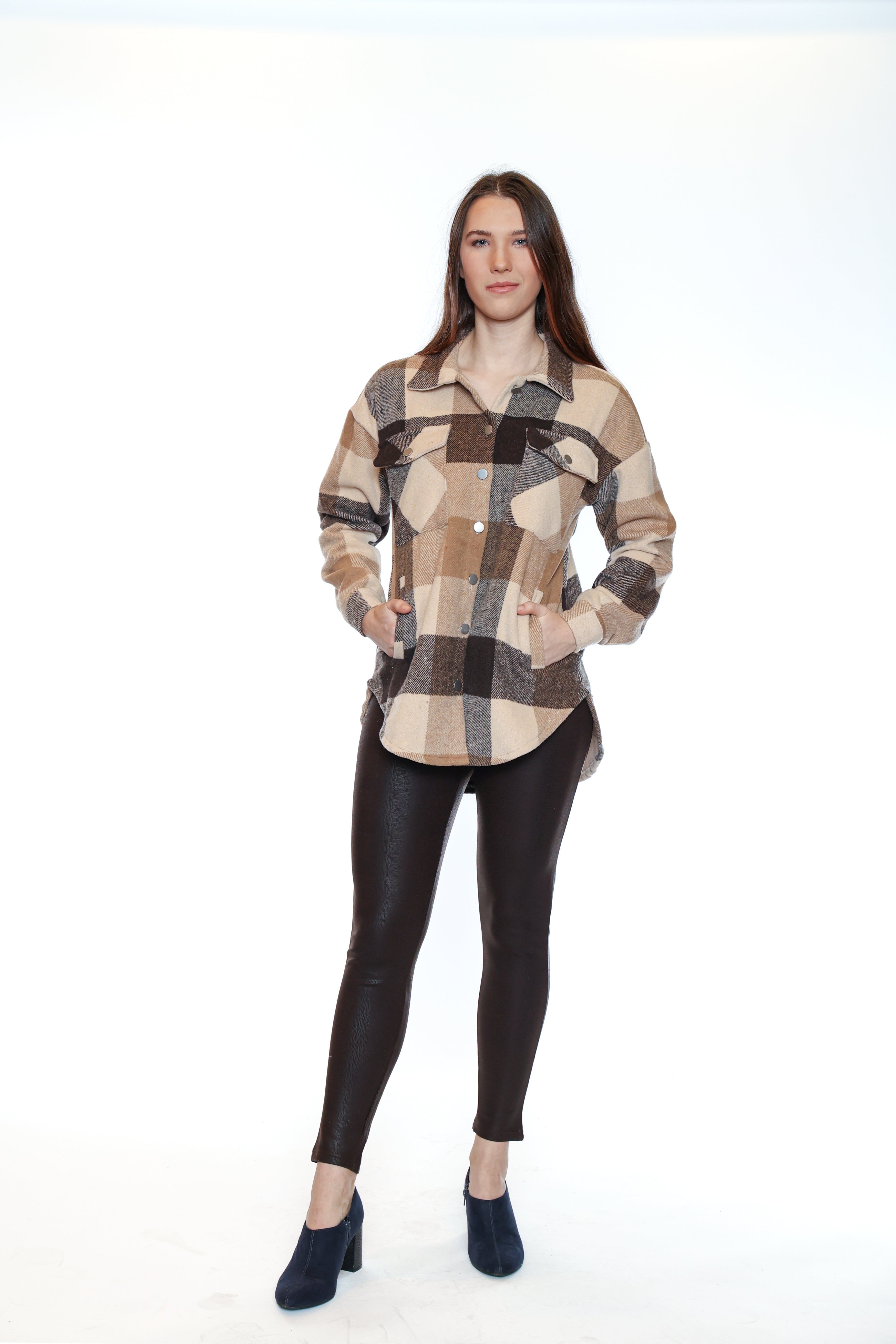 This stylish plaid jacket from Papa Fashions is a must-have for any wardrobe. Featuring a timeless brown color and functional pockets, this jacket combines fashion and functionality. Perfect for any occasion, keeping you warm and comfortable. Add this versatile piece to your wardrobe today.