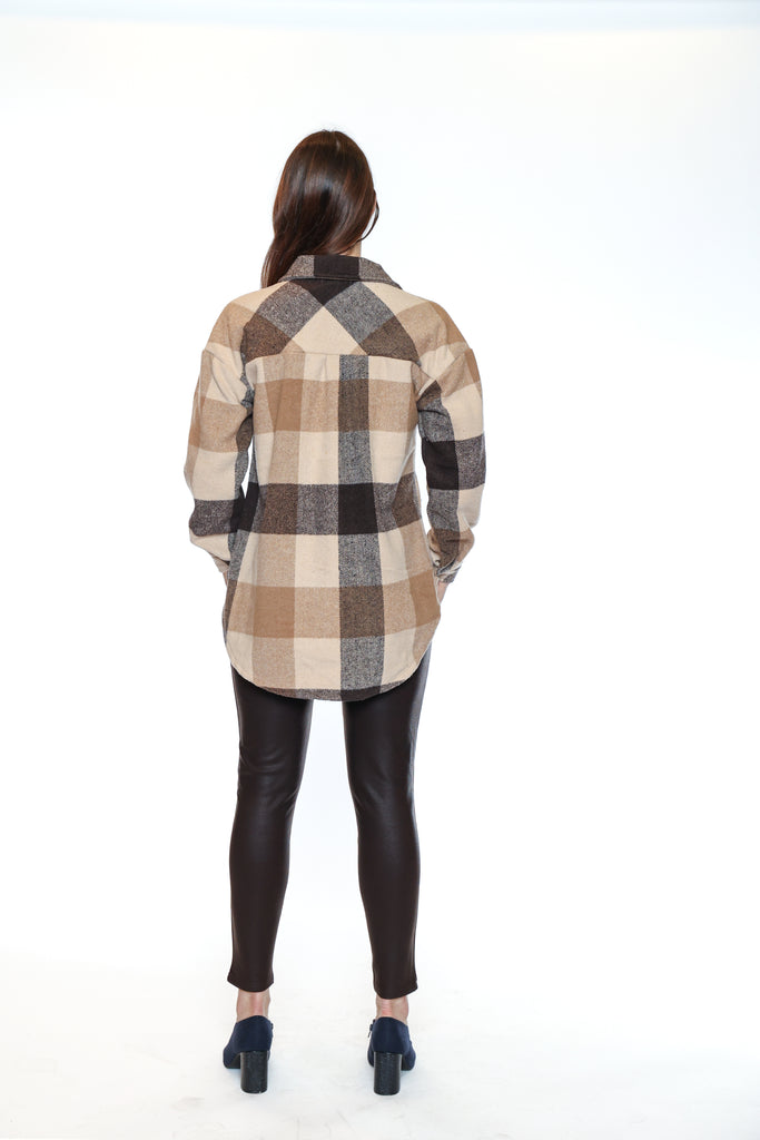 Papa Fashions Plaid Jacket with Pockets in Brown