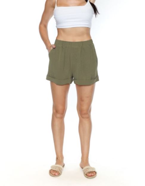 Papa Fashions Women's Cuffed Shorts With Elastic Waist And Pockets - Olive