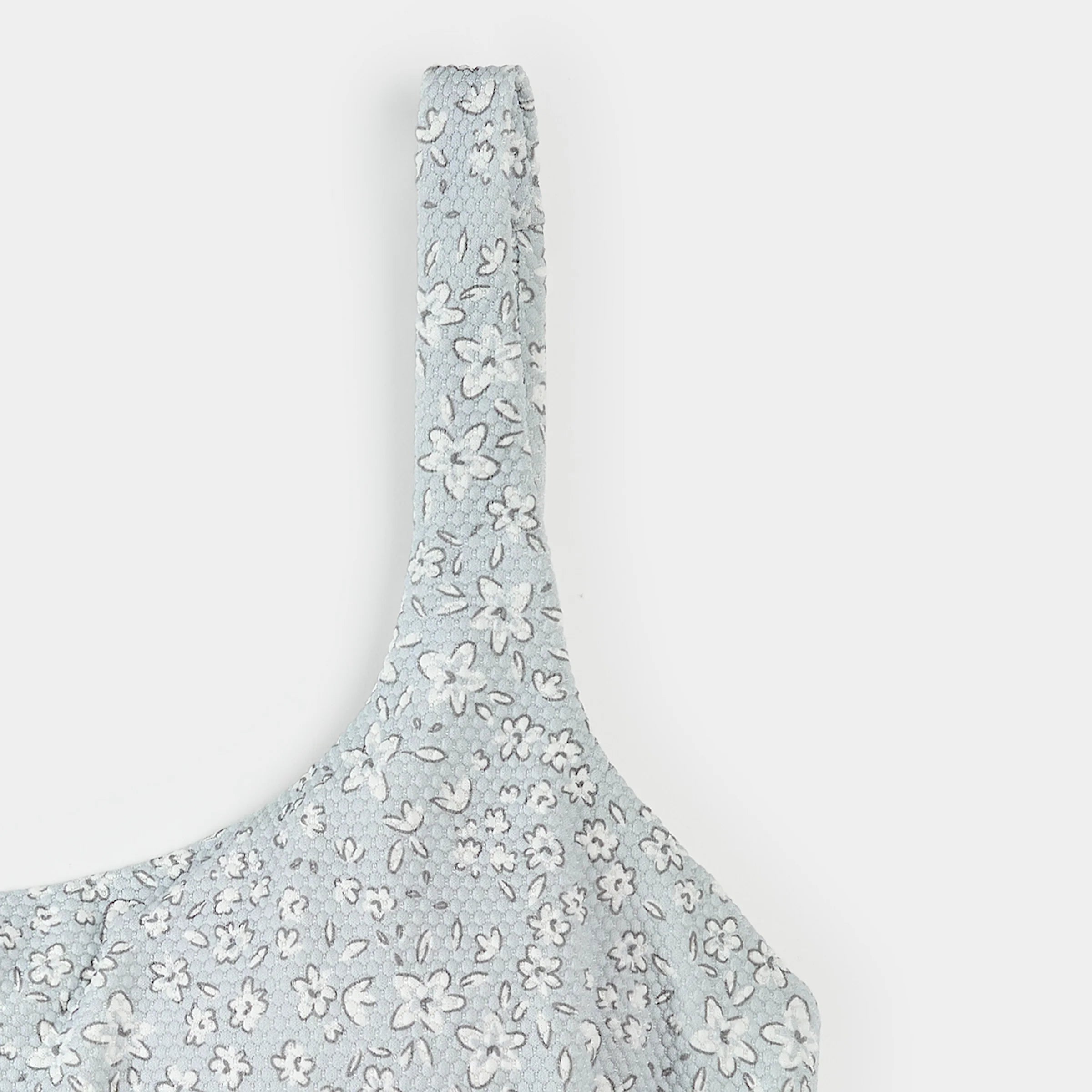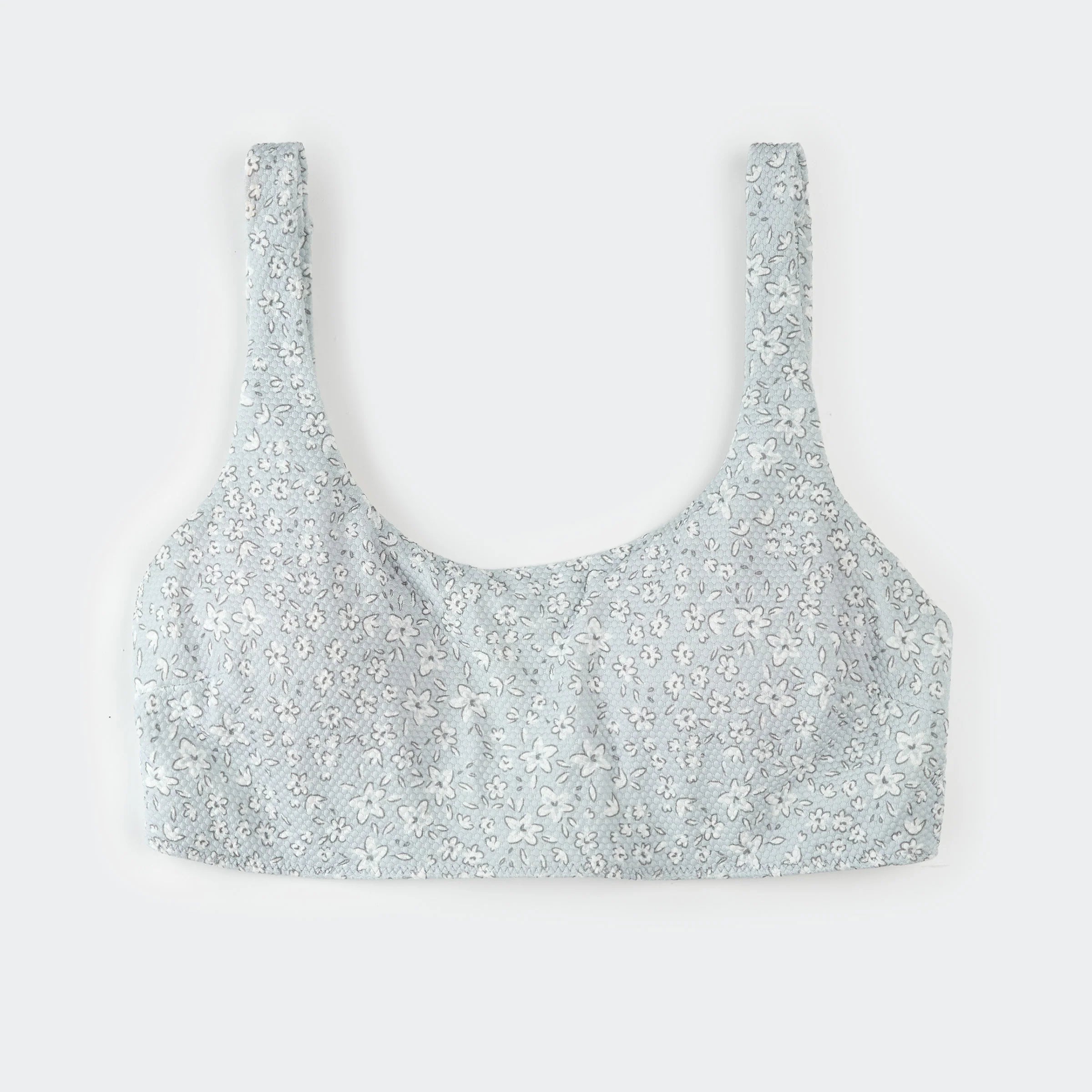 petit lem-Vintage Flowers Print on Powder Blue Women's Bikini Top