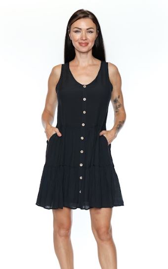Papa Fashions Women's Lined Dress With Pockets And Button Detail - Black