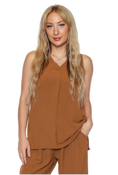 Papa Fashions Women's Sleeveless V Neck Tank Top - Brown