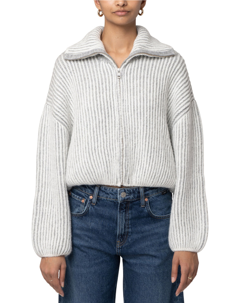 Mavi Women’s Zipper Tricot Cardigan In Antique White Stripe