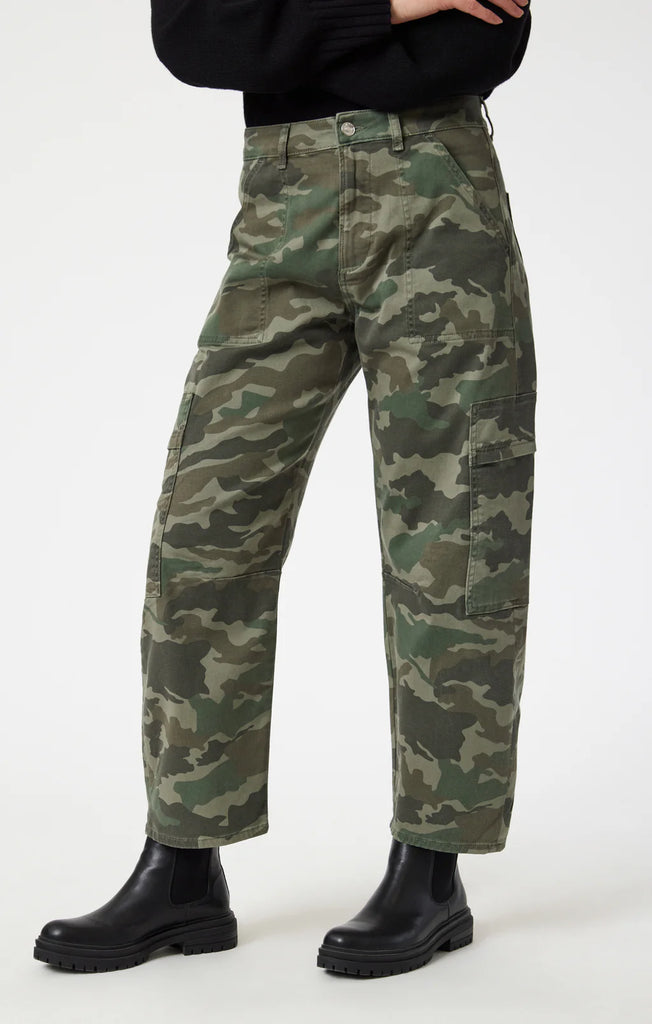 Expertly crafted with a high rise and khaki camo twill, the Mavi VINNE Barrel Cargo Pants combine style and versatility. These pants offer a flattering fit and functional design, perfect for any occasion. Add a touch of sophistication to your wardrobe with these timeless cargo pants.