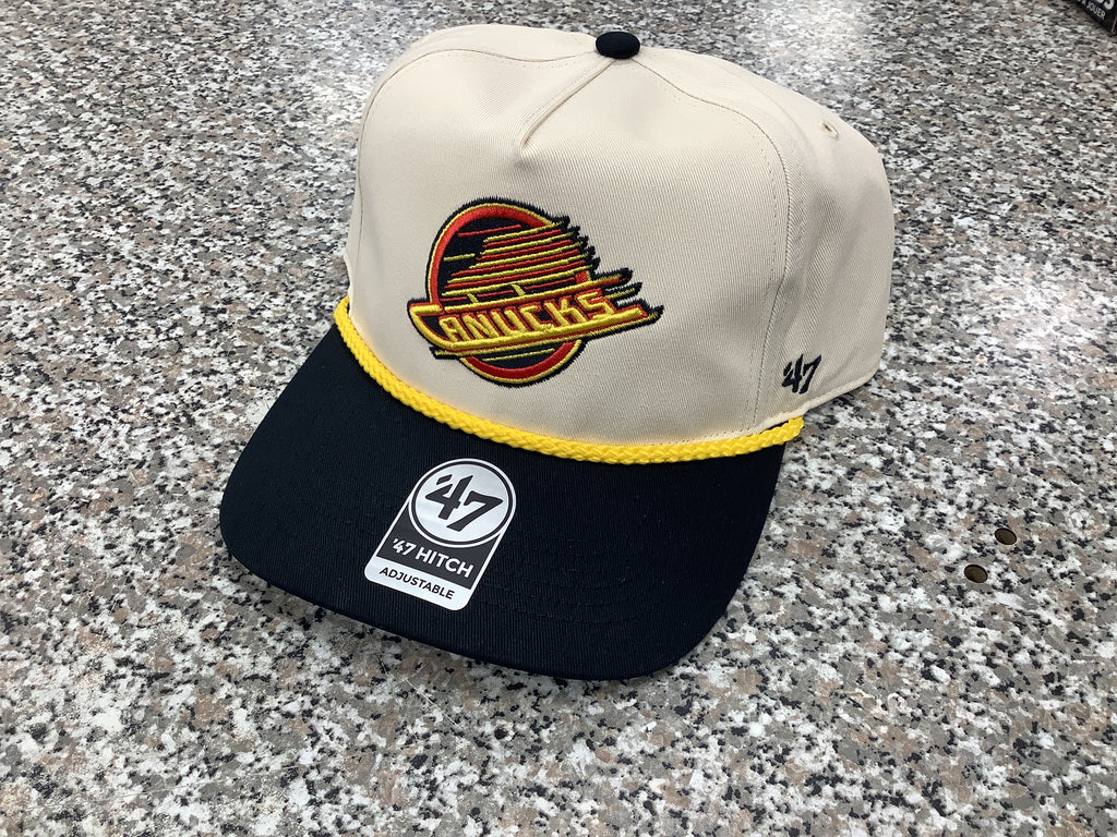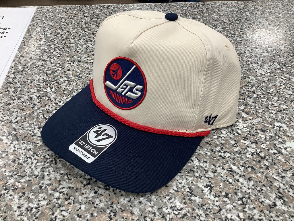 The ’47 ROPE HITCH is a structured shape cap with a pinch front panel, a semi-curved visor and an adjustable plastic snapback closure. It is made from garment washed cotton twill material and has a white braided rope.