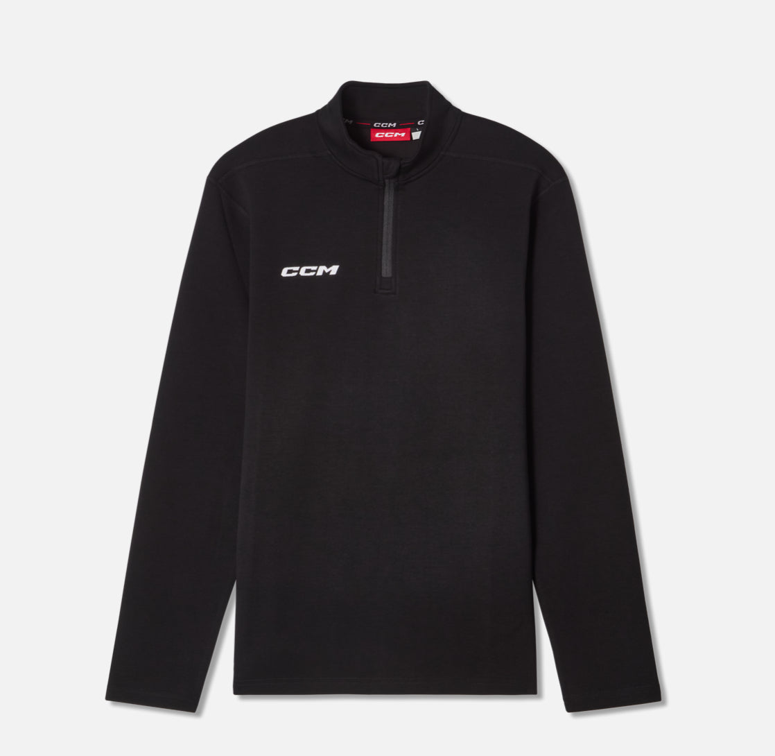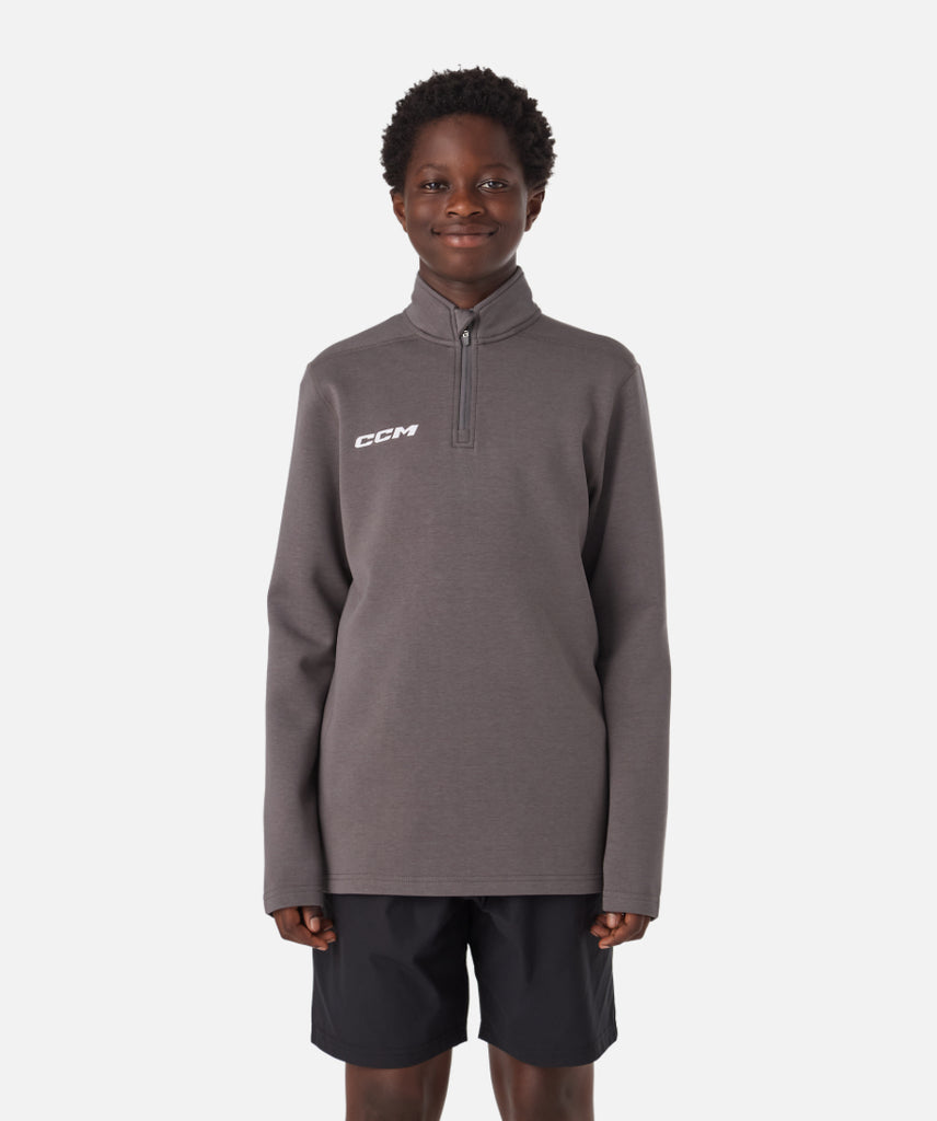 Give your aspiring athlete the ultimate blend of comfort, style, and performance with the team travel 1⁄4 zip youth top. Crafted from a premium mix of recycled polyester and Lyocell, this model delivers an ultra-soft feel and the proper stretch to move freely. With a bold CCM embroidered logo and a sturdy zipper, it's the perfect choice for team outings, practices, or everyday wear, keeping them looking sharp and feeling great.