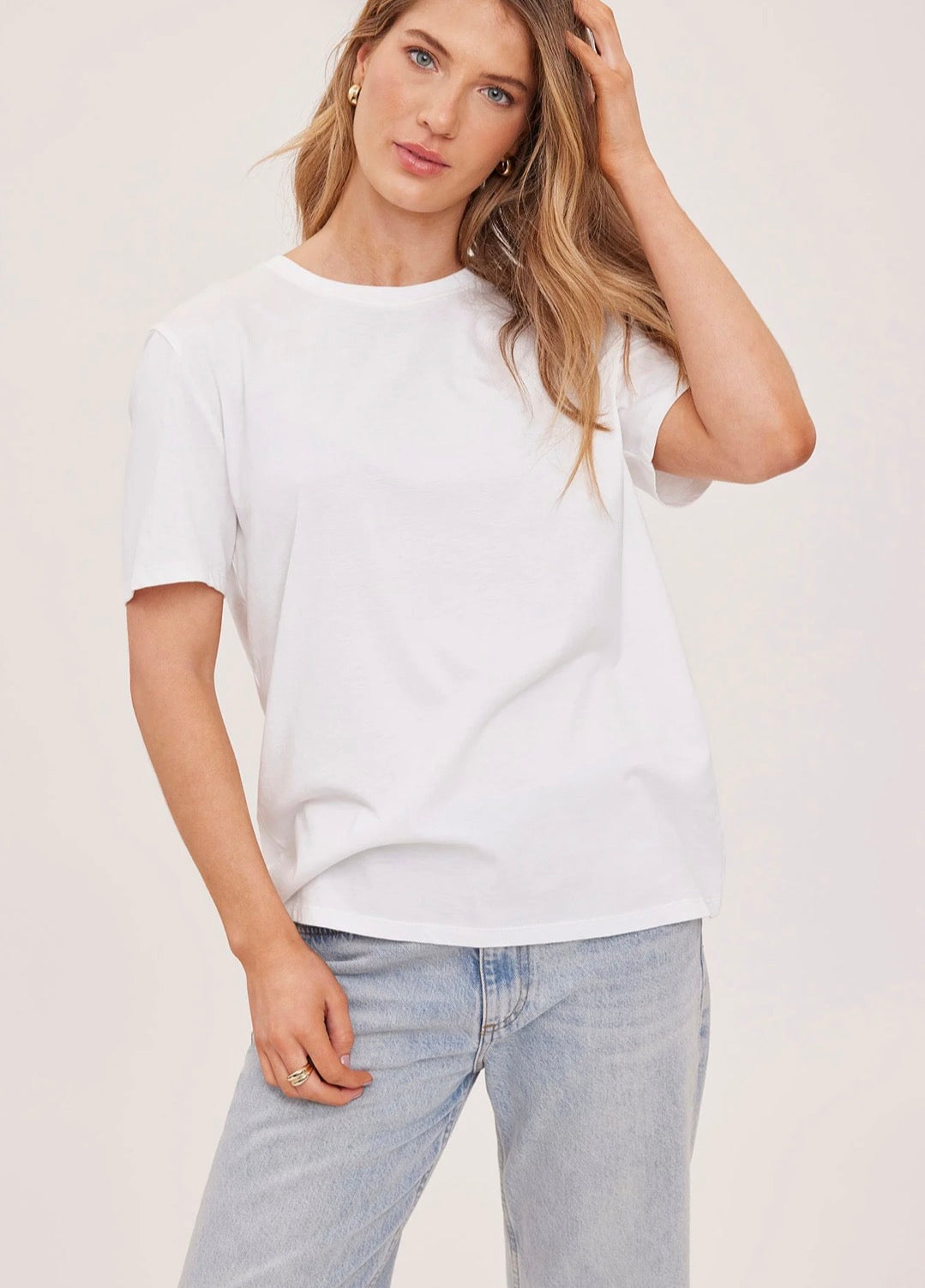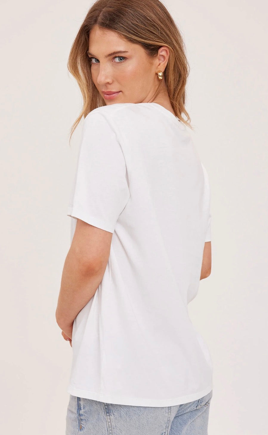 The Victoria t-shirt is part of our Icon Series, a collection of classic silhouettes made exceptional by the women who wear them. It's made of a cotton jersey fabric that has been specially washed for a perfectly lived-in look. Features include a crew neckline and relaxed fit.