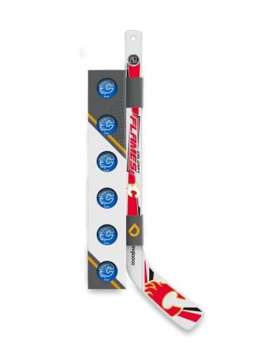 NHL Calgary Flames Rapid Fire Set. Includes one (1) plastic player 18" mini stick and six (6) foam balls- Practice your snipes!