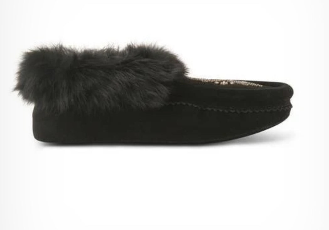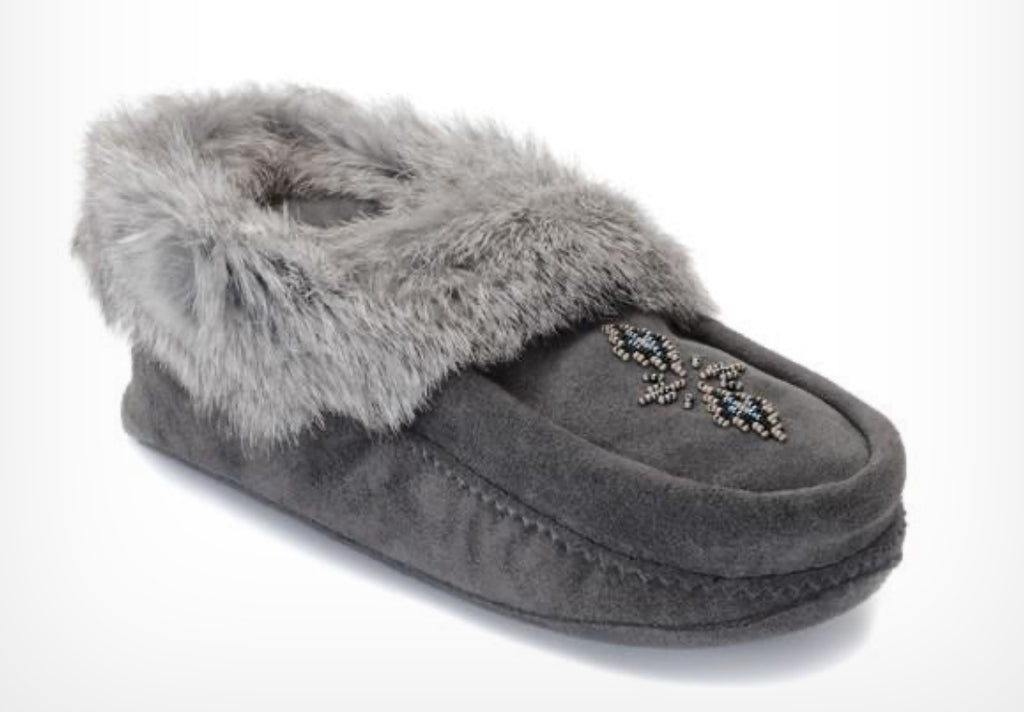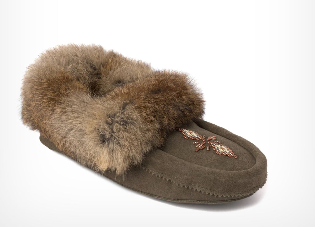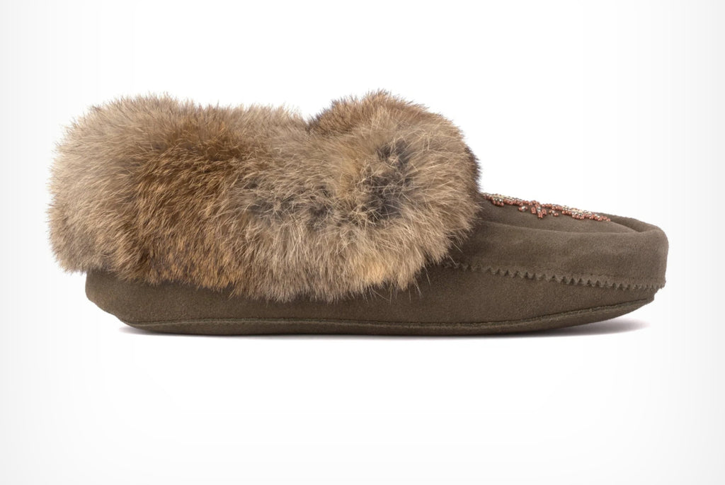 Our best-selling Tipi Slipper delivers all of the sleek beauty and practicality of a traditional indoor moccasin. Whether you're hanging out around home or going about your day at the cottage, you’ll live and lounge in Tipi's comfort all year long. Trimmed with fur and crafted of soft, breathable suede, Tipi slippers deliver luxury you'll enjoy for years. Its fleece footbed keeps you cozy while its soft suede sole offers barefoot-style comfort.