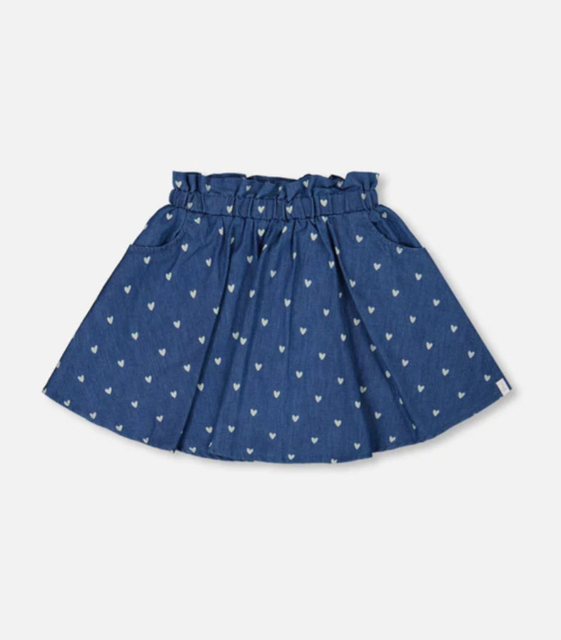 Printed Chambray Skort Navy Blue And White Hearts