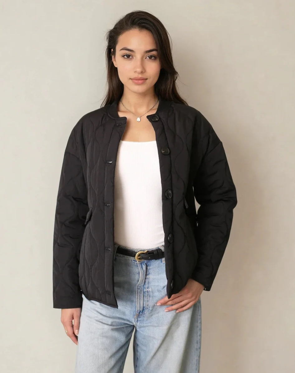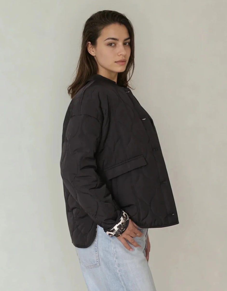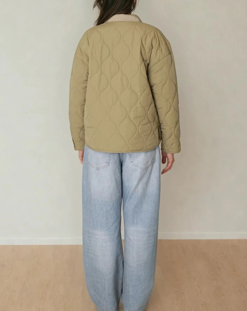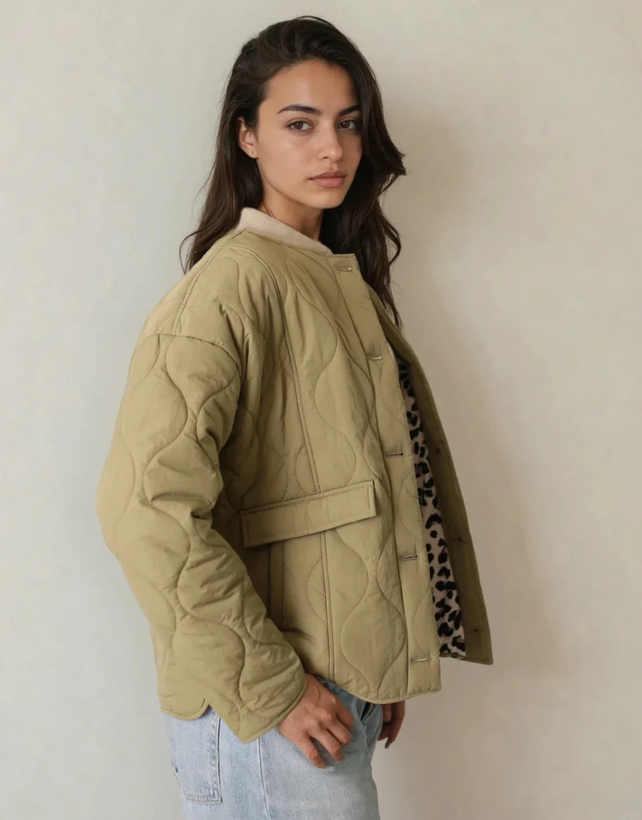 The Elora Quilted Coat delivers effortless elegance with a playful twist. Lightweight quilting provides warmth without bulk, while the hidden leopard lining adds an unexpected touch of personality. Perfect for layering through transitional seasons, this versatile piece transitions seamlessly from casual outings to refined occasions. The relaxed silhouette and sophisticated tone make it a wardrobe essential that feels both polished and approachable.