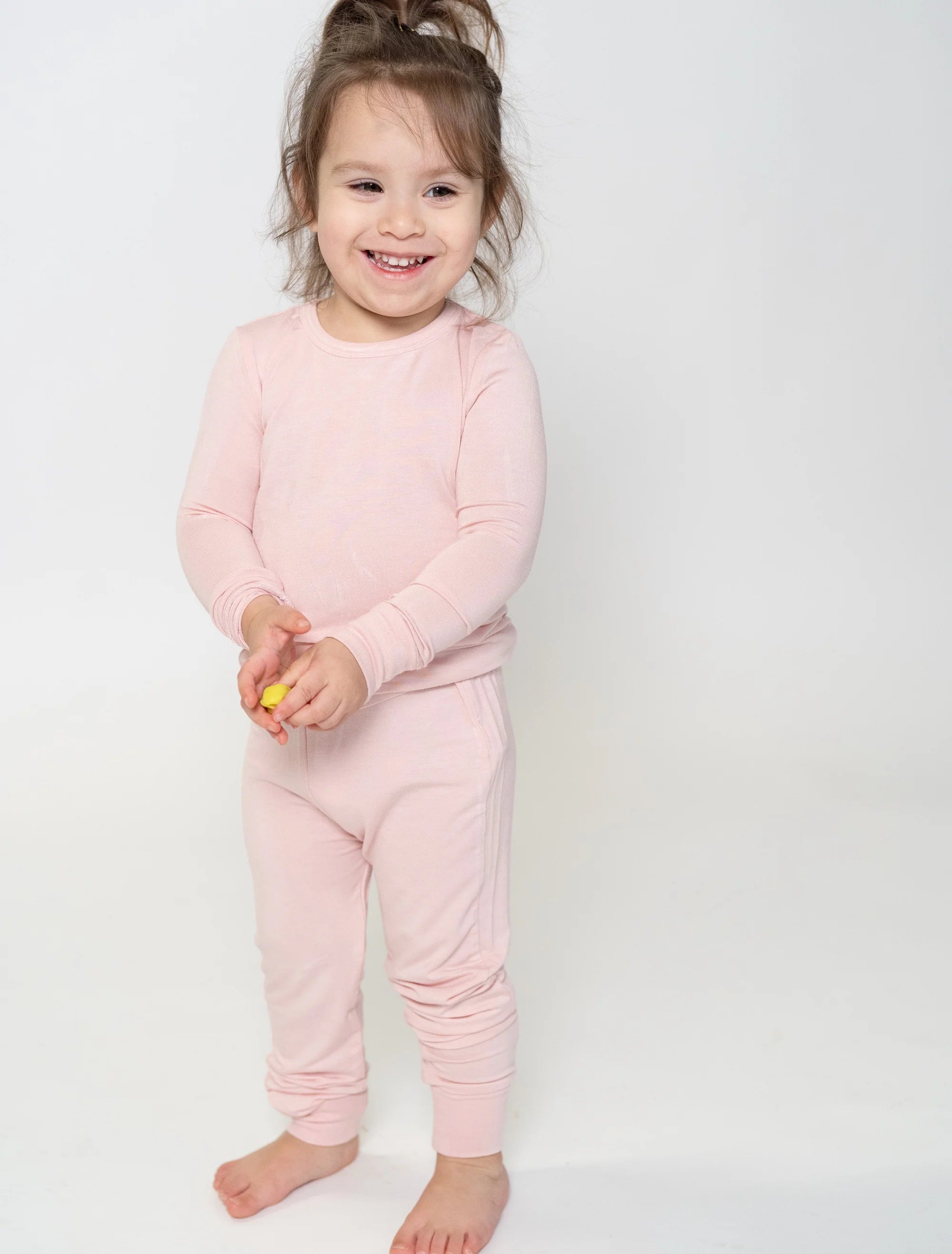 Moms love our Luxuriously soft and breathable pajama set. Long sleeve and contrast color rib on neck binding and cuffs.